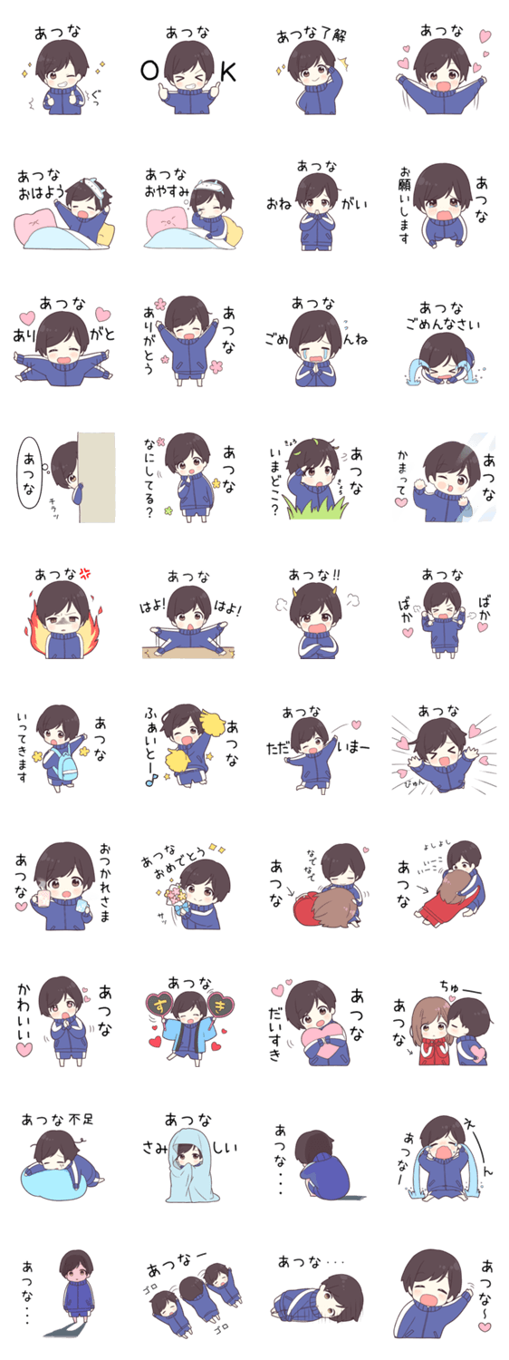 | スタンプ説明 | 【あつな】に送る専用のジャージくんスタンプ第1弾です。大好きな「あつな」に呼びかけます。 |