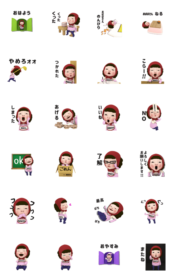 【#3】レッドタオルのpink【おばばさん】 -LINEスタンプマニア