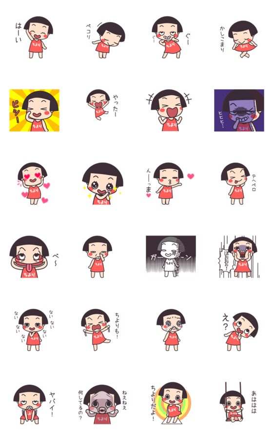 【ちより専用】おかっぱ頭のちよりが元気に動くスタンプです。