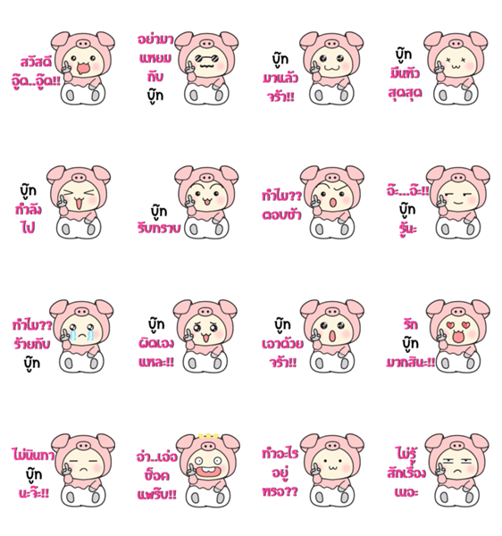 | スタンプ説明 | Baby wore piggy suit sticker, is named Boot. Let's have fun and happy with this sticker. |