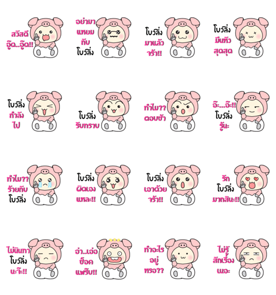 | スタンプ説明 | Baby wore piggy suit sticker, is named Bowling. Let's have fun and happy with this sticker. |