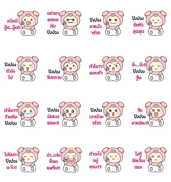 | スタンプ説明 | Baby wore piggy suit sticker, is named Bpingbpong. Let's have fun and happy with this sticker. |