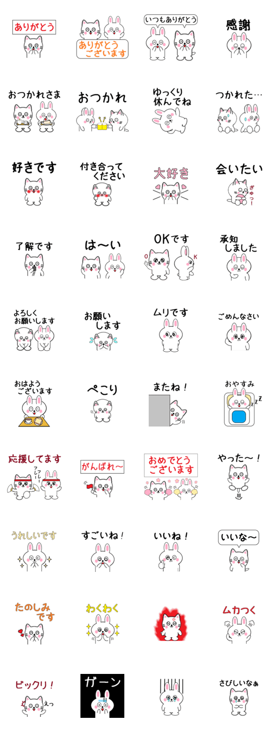 ねことうさぎのスタンプです。気持ちを伝える編。