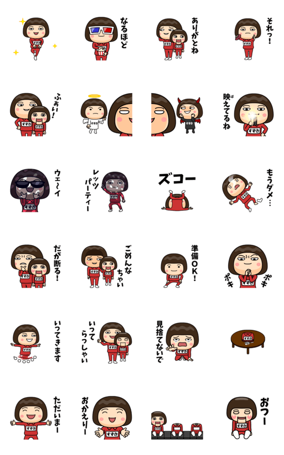 すずきが使う芋ジャージの名前スタンプ第6弾!クスっと笑えるような小ネタが満載♪相手に伝えにくい言葉は、初登場の腹話術人形リトル・スズキに代弁してもらおう!
