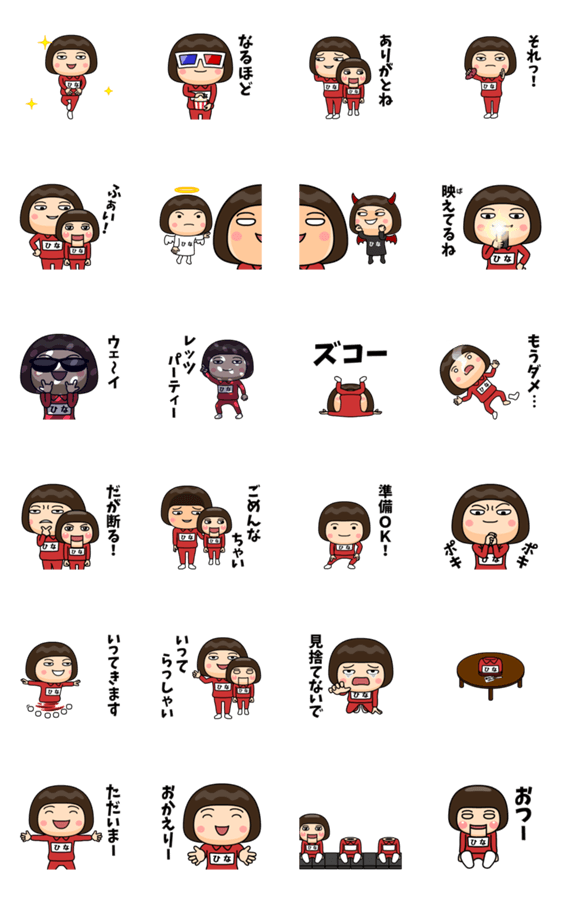 ひなが使う芋ジャージの名前スタンプ第6弾!クスっと笑えるような小ネタが満載♪相手に伝えにくい言葉は、初登場の腹話術人形リトル・ヒナに代弁してもらおう!