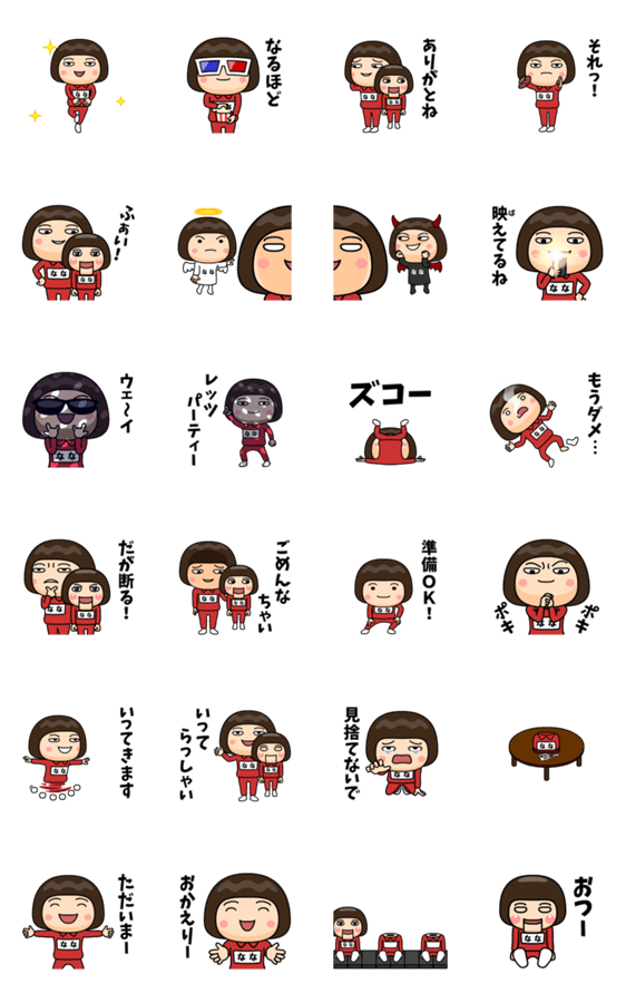 ななが使う芋ジャージの名前スタンプ第6弾!クスっと笑えるような小ネタが満載♪相手に伝えにくい言葉は、初登場の腹話術人形リトル・ナナに代弁してもらおう!