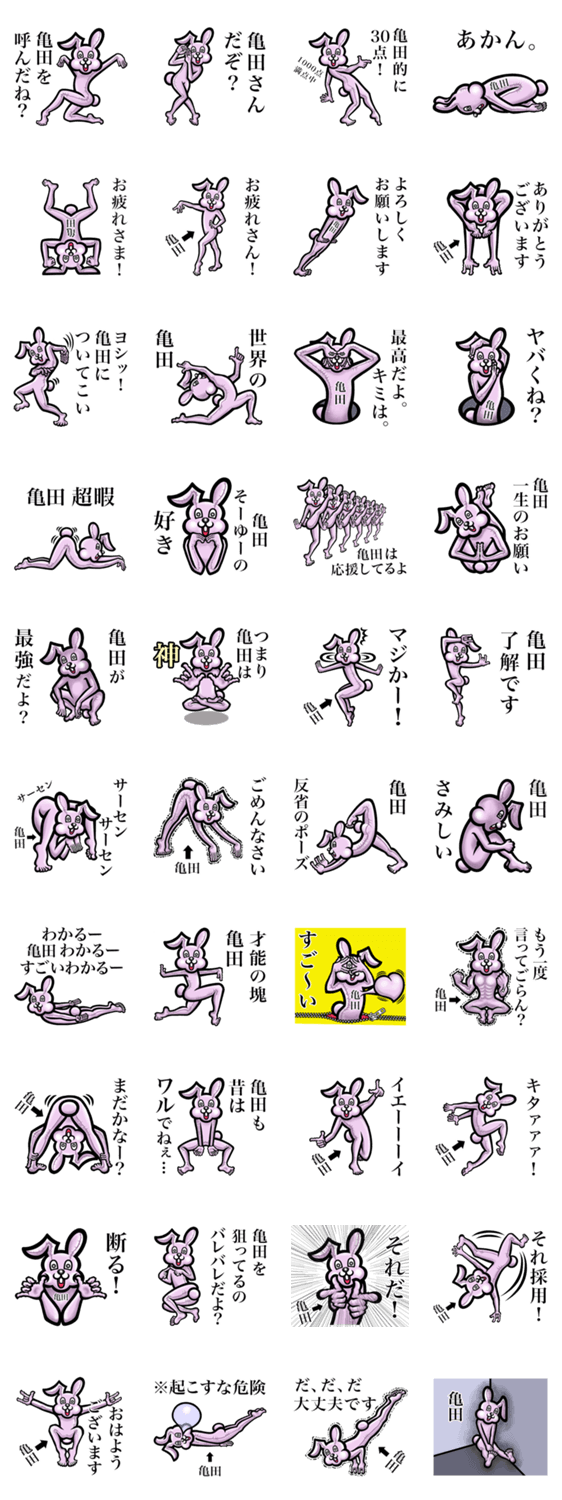 | スタンプ説明 | 名前が【亀田/かめだ】さんスタンプ。亀田/カメダ/かめちゃん/カメチャン/亀田君/かめたくん/カメタクン/かめりん/カメリン/かめしー/カメシー/かめっち/カメッチ/なぽろあ |