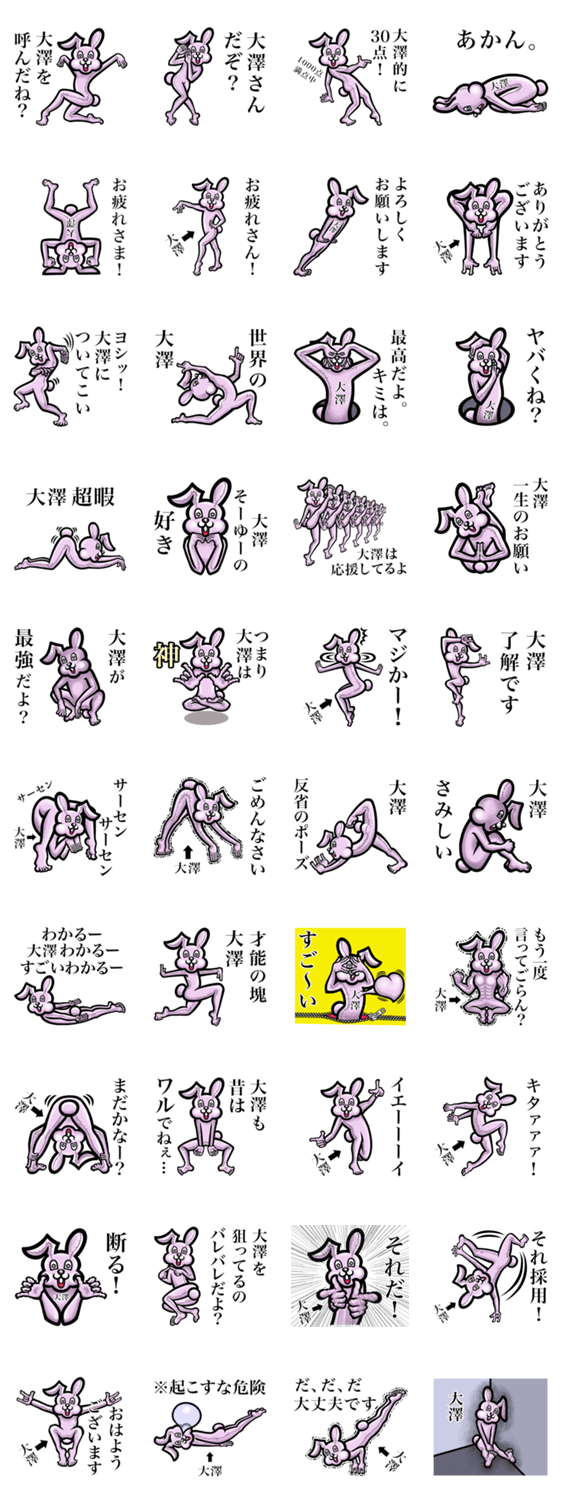 | スタンプ説明 | 名前が【大澤/おおさわ】さんスタンプ。大澤/オオサワ/おおちゃん/オオチャン/大澤君/おおざわくん/オオザワクン/さわりん/サワリン/ざわしー/ザワシー/さわるん/なぽろあ |