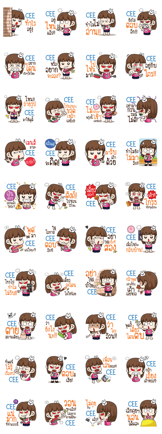 | スタンプ説明 | This sticker is made for chatting with "CEE". "CEE" will be glad to see it. |
