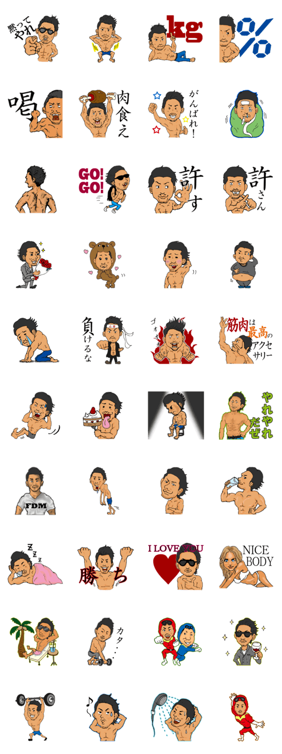 腹筋大魔王、略してFDMが自慢の美ボディーを披露!かっこいいスタンプや少しセクシーなスタンプで日常会話のお手伝いをします。筋肉は最高のアクセサリー!