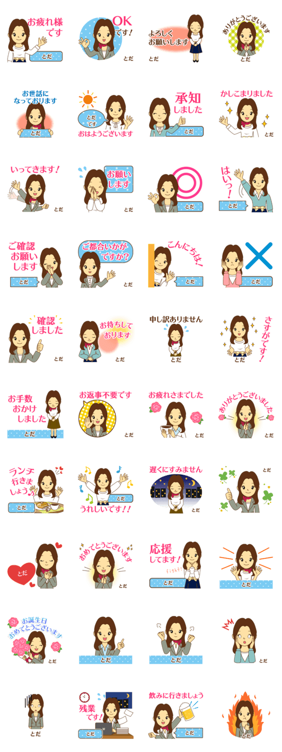 | スタンプ説明 | 大人や社会人の丁寧な敬語や仕事にも!会社,女性,パート,OL,アイシス作[戸田/とだ/トダ/外田/計田/十田/兎田/杜多/登田/都田/砥田/砺田/土田/富田/冨田/東田/部田/飛田]苗字 |