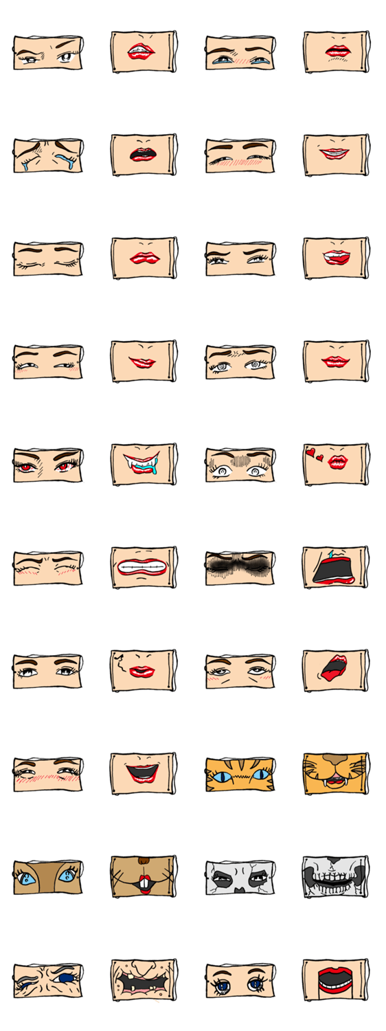 二個で一つになる表情スタンプの女性版!20×20のスタンプであなたの気持ちを表してみて!
