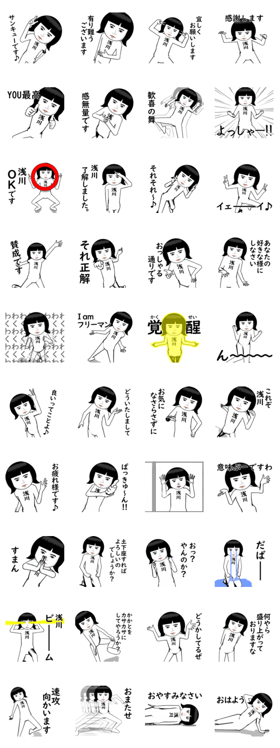 真顔の名前・名字スタンプです。♂♀verあり。名字は♂♀両パターンあり※あさかわ,あさがわ