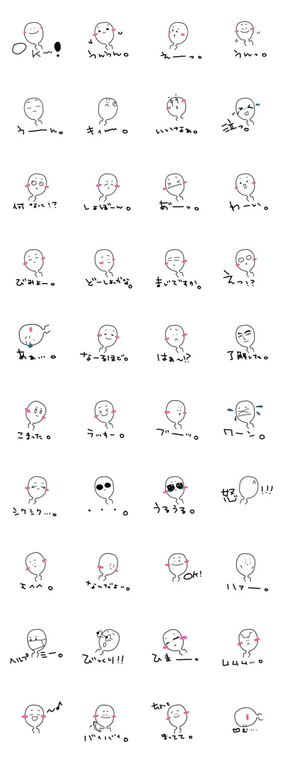 心も体も真っ白い人のスタンプです、日常会話で使いやすそうなものを作ってみました