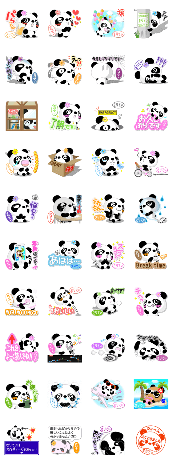 | スタンプ説明 | さりてぃちゃんのために贈るキュートなお名前スタンプ「Missパンダ」です。ほかのバージョンとセットで長~く愛用してくださいネ♪♪プレゼントとしても是非どーぞ♪♪ |