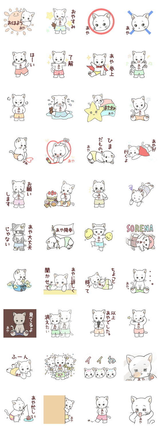 あやさん用パンツをはいた猫です。 毎日使える基本のスタンプ集です。(あやか,あやこ,あやな,あやの,あやめ)さんも使って下さい。