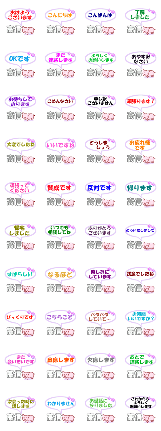 高信「たかのぶ」さん専用。おはようございます、了解、出席、欠席、賛成、反対など大人の丁寧な日常会話、連絡用にどうぞ