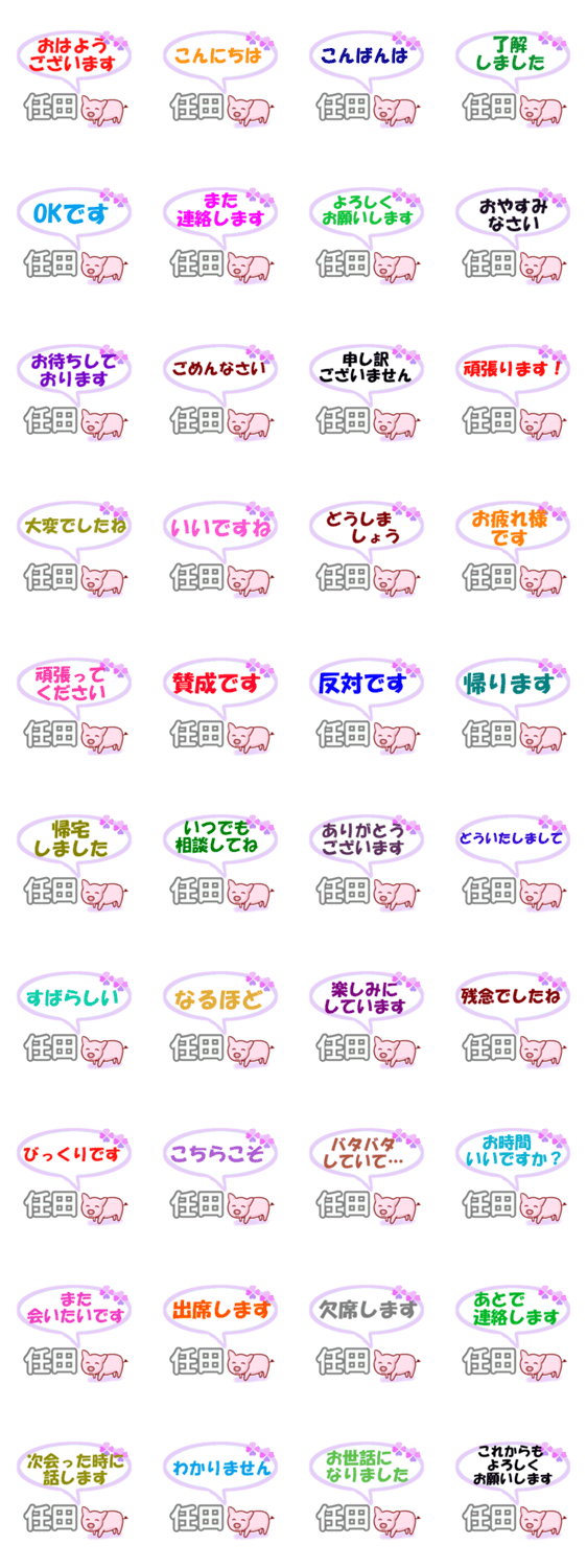 任田「とうだ」さん専用。おはようございます、了解、出席、欠席、賛成、反対など大人の丁寧な日常会話、連絡用にどうぞ