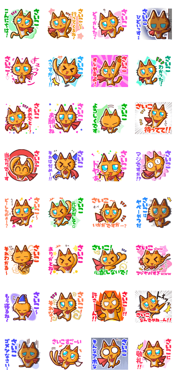 | スタンプ説明 | ゆっけ。が贈る【さいこ】に『送る用』名前スタンプ17です。友達や恋人とのやりとりに。《ゆっけ。のアニぱ!》01「ヒーローになりたいねこ」です。 |