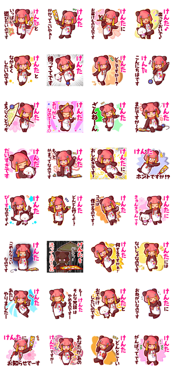 | スタンプ説明 | ゆっけ。が贈る【けんた】に『送る用』名前スタンプ32です。友達や恋人とのやりとりにぜひ。《きぐるみじょし》05「パンダなわらしちゃん」と親友の「甘パン」です。 |