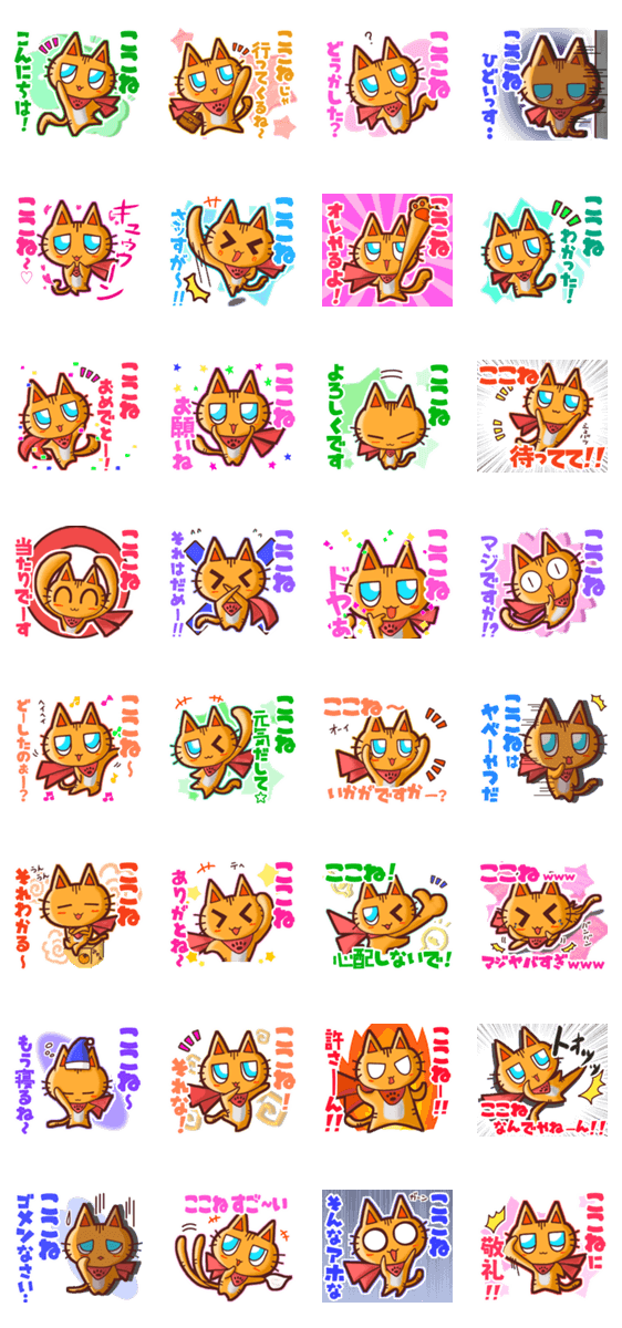 | スタンプ説明 | ゆっけ。が贈る【ここね】に『送る用』名前スタンプ17です。友達や恋人とのやりとりに。《ゆっけ。のアニぱ!》01「ヒーローになりたいねこ」です。 |