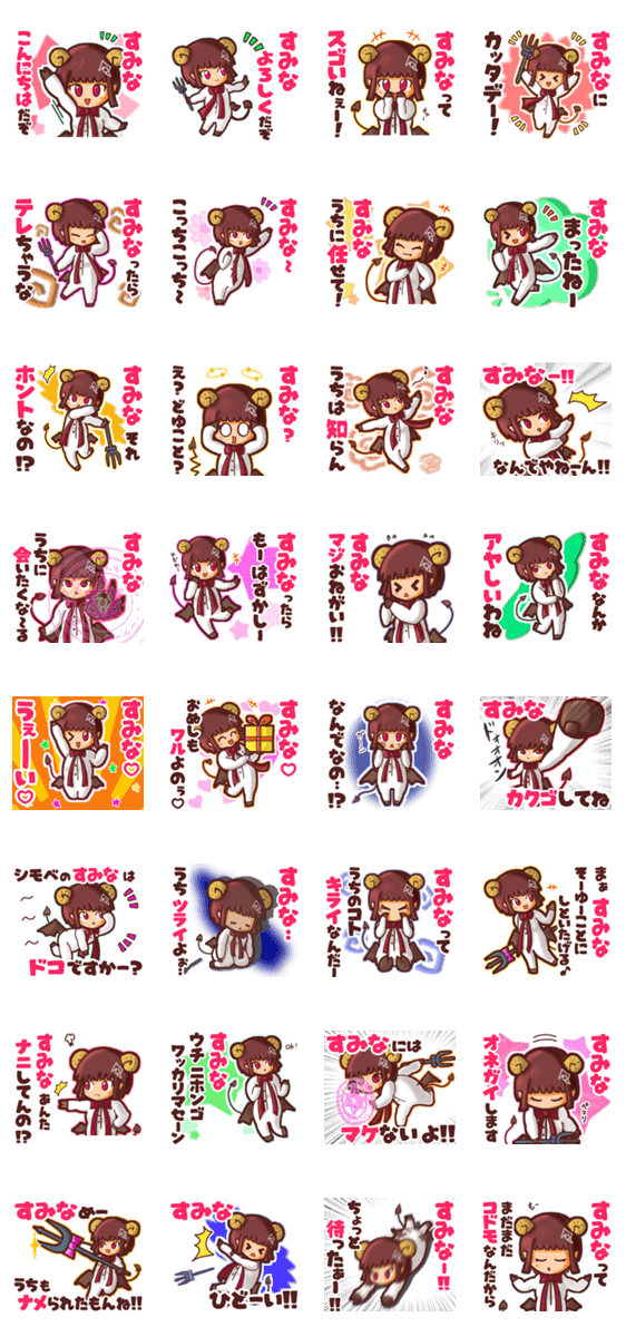 | スタンプ説明 | ゆっけ。が贈る【すみな】に『送る用』名前スタンプ29です。友達や恋人とのやりとりに。《きぐるみじょし》03「デビルなしーちゃん」です。 |