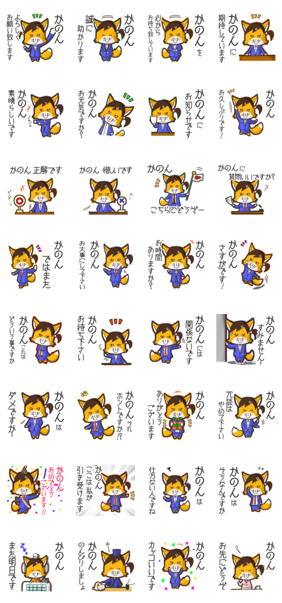 | スタンプ説明 | ゆっけ。が贈る【かのん】に『送る用』名前スタンプ23です。友達とのやりとり等に。《ゆっけ。のアニぱ!》07「きつねのてんくー姉妹・妹くーこ」です。 |