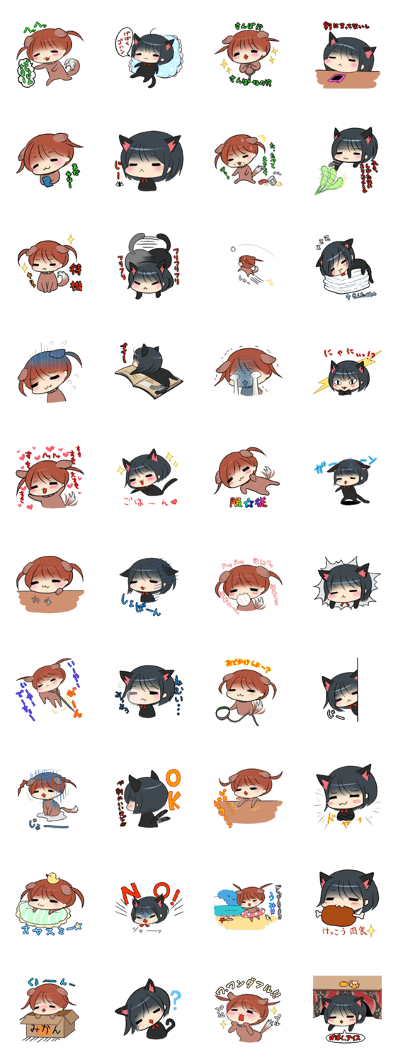わん娘とにゃん娘がにゃんともワンダフルなスタンプに!犬派の人も猫派の人も使ってくださいね。