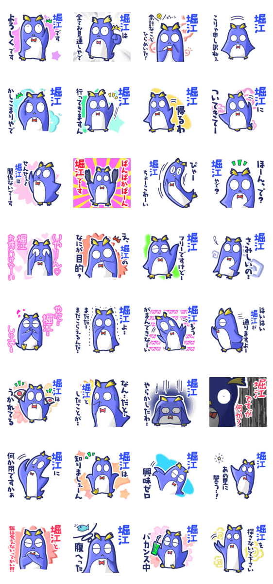 ゆっけ。が贈る【堀江】用名前スタンプ05です。友達や恋人とのやりとり、グループの連絡にぜひ。《ゆっけ。のアニぱ!》05「てきとーなペンギン」のスタンプです。