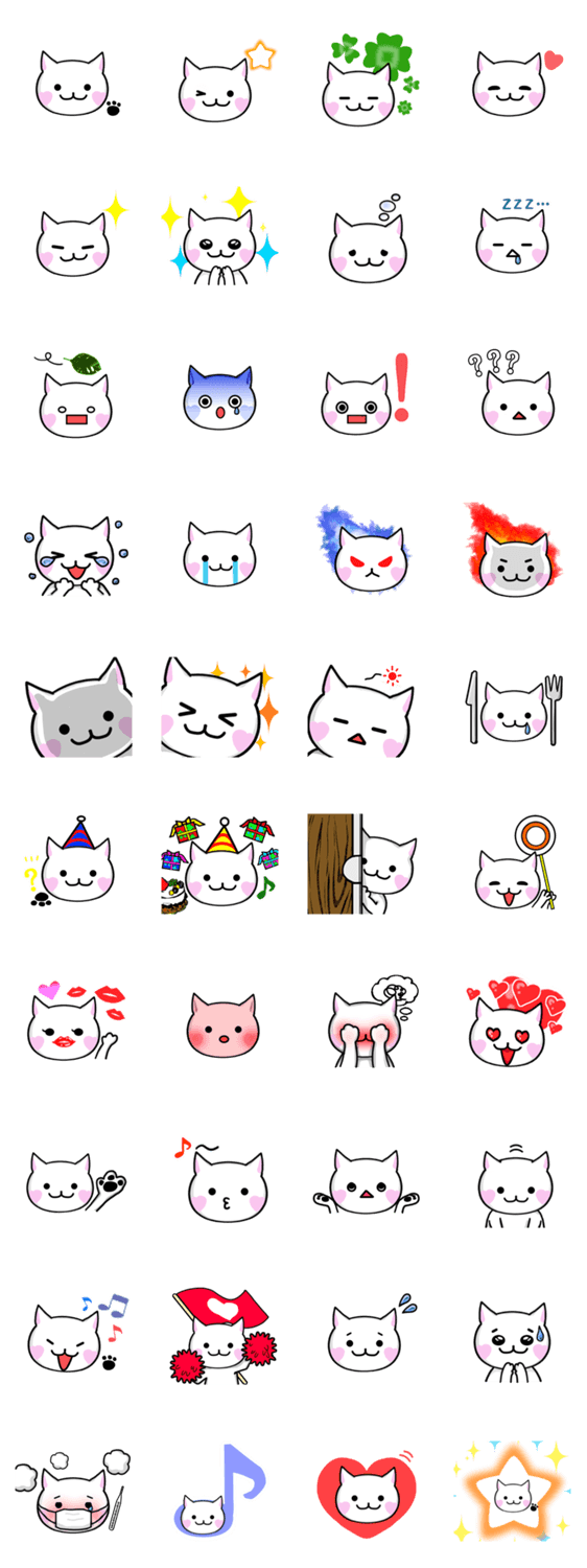 ほっぺがハートの可愛いゆるっとネコです。日常生活から様々な会話で使える、癒し系スタンプですのでポンポン使ってください!