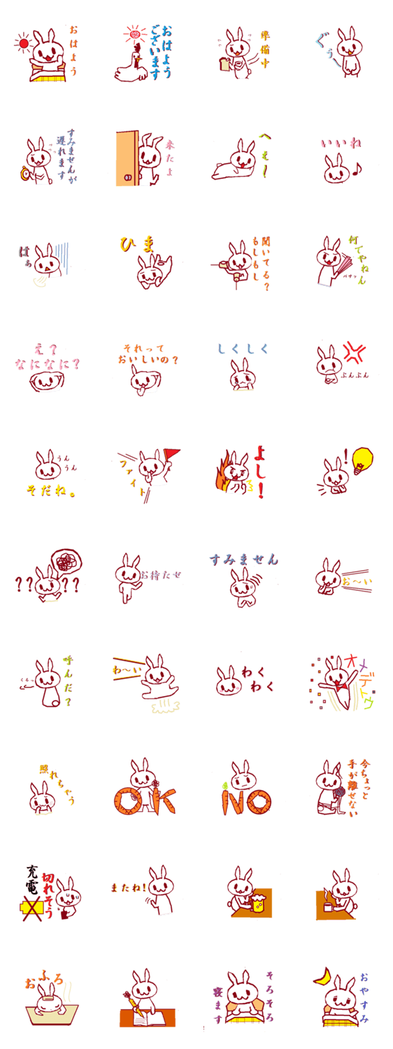 ごく普通のまっしろいうさぎの素朴なスタンプ。