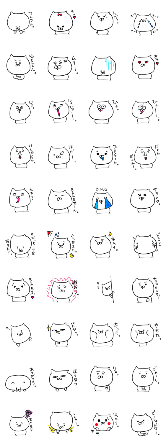 白ネコのあいうえお・・・ってるスタンプ