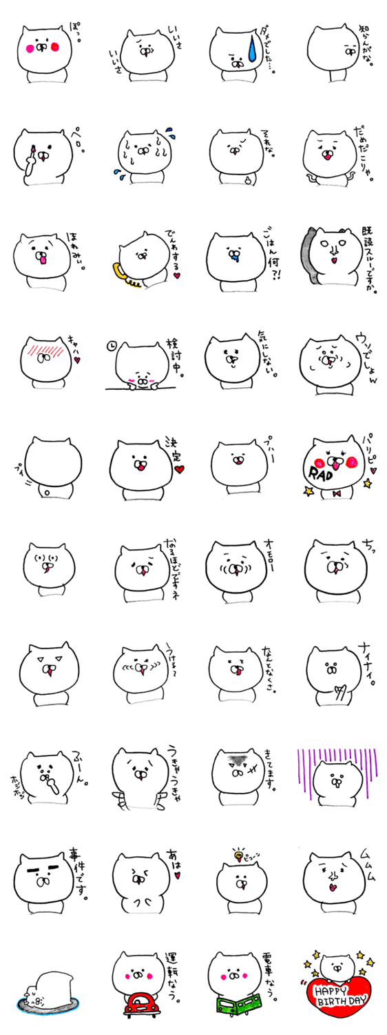 白ネコのあいうえお・・・ってるスタンプ