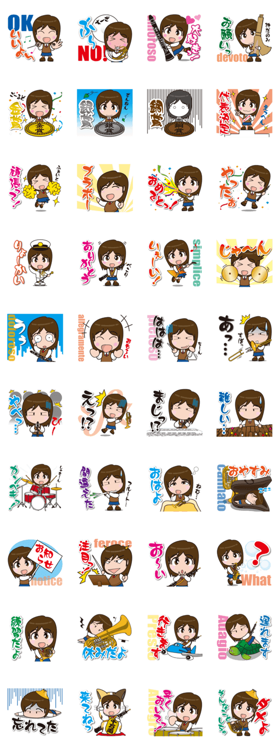 | スタンプ説明 | 吹奏楽が大好きなお茶目な女の子!吹奏楽を愛する全ての皆様にお届けします! |