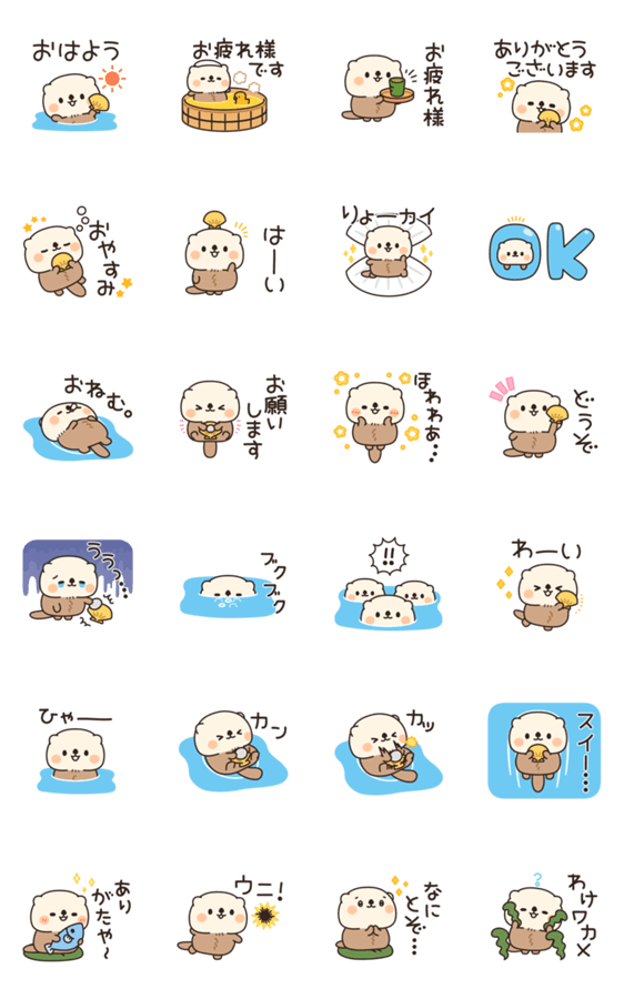 挨拶やお返事、リアクションに、日常会話で使いやすいラッコのアニメーションスタンプです!