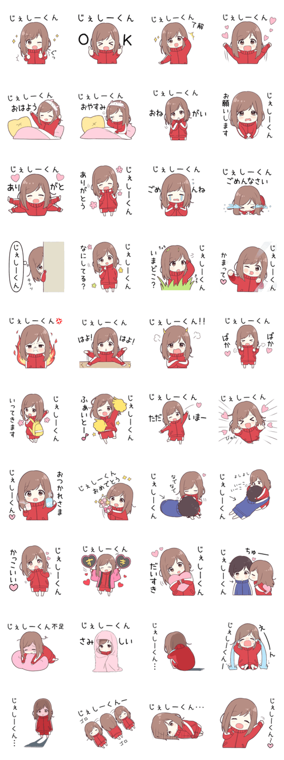 | スタンプ説明 | じぇしーくんに送る専用のジャージちゃんスタンプ第1弾です。大好きな「じぇしーくん」に呼びかけます。 |