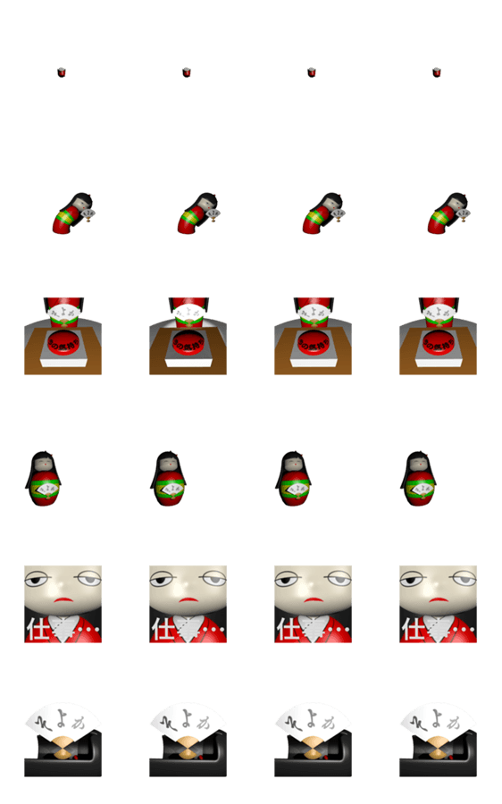 動くこけしスタンプです。スタンププレビュー機能ON推奨。