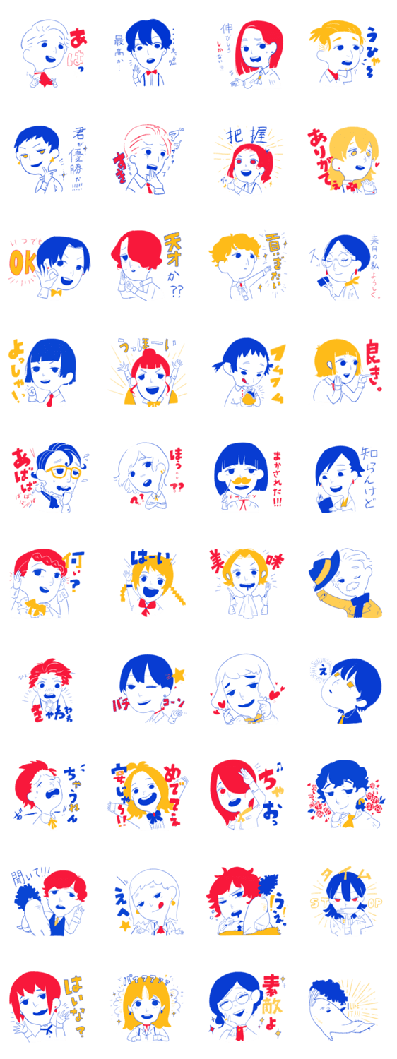 赤・青・黄 3色オンリーのスタンプです。 シンプルに、お洒落に、ノリよく!