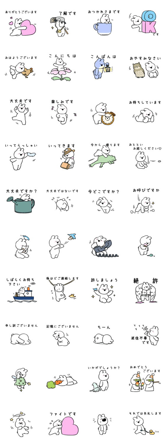 | スタンプ説明 | 友だち・家族・会社の先輩、相手を選ばず毎日使える丁寧な言葉を集めました!見た目とのギャップがシュールでかわいい毒舌も…!?ボリューム満点静止画ver.です! |