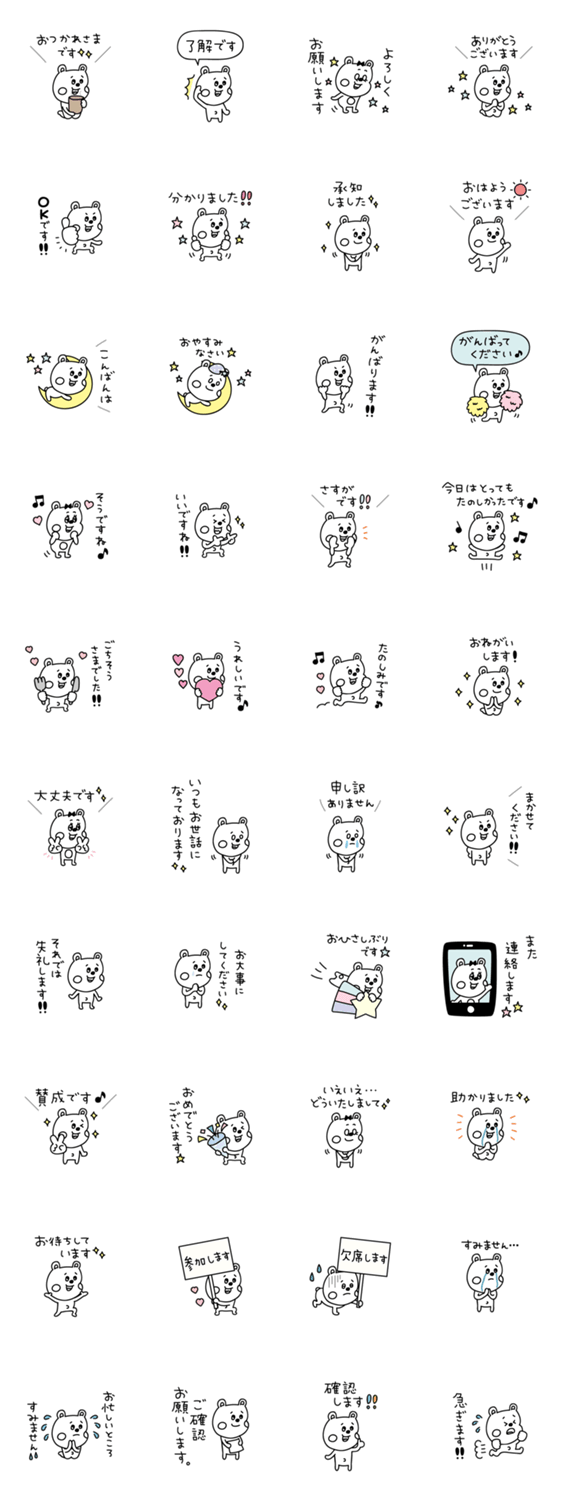 絵文字でも登場している、ミニサイズのラクガキ調くまカップルをスタンプにしました♪目上の方や、先輩や上司、ママ友や友達にも使える敬語です☆