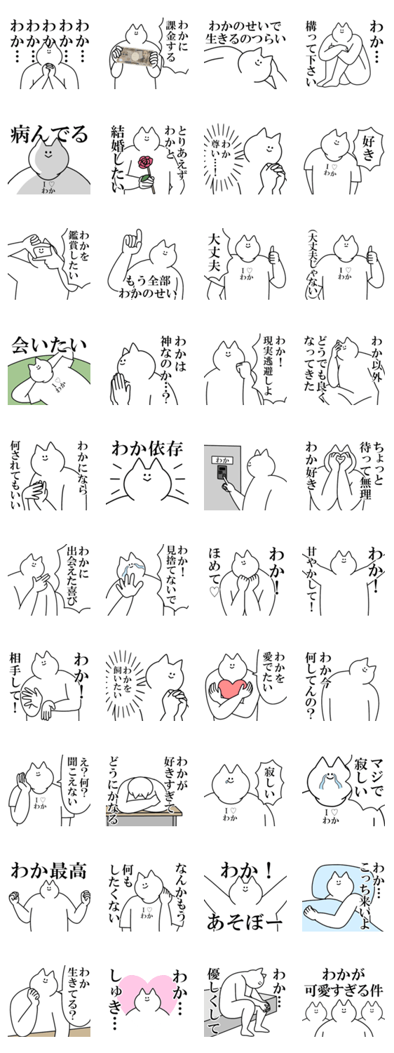 わかちゃんに送る名前スタンプ。愛情強め。好きな人彼氏彼女推しに使える!メンヘラ、ヲタク、ヤンデレ、ネタ系、アイドル好きな方へ。ワカ わかこ わかな ワカナ/oroninet