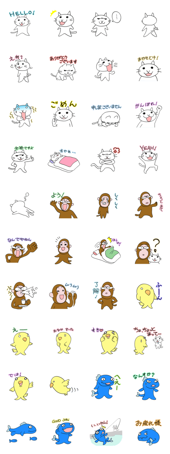 雑でゆるくてちょっとウザい感じのネコプーと仲間達のスタンプです。お友達に送ったらきっといい感じですね。とっても実用的ですよ。