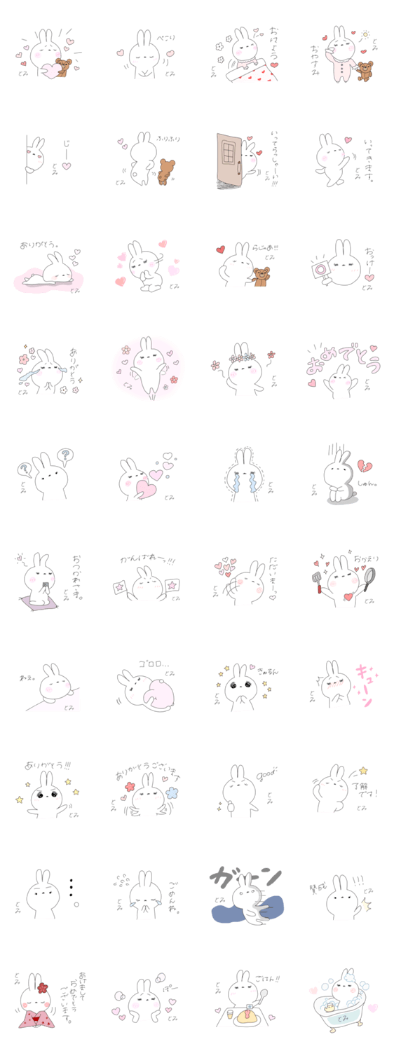 | スタンプ説明 | 名前スタンプです。もちもちの可愛いうさぎ。家族、友達、彼氏、彼女との会話に!。らびちゃん。シリーズ2。とみ,トミ |