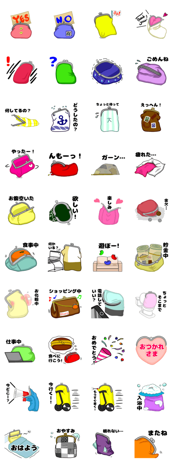 がま口好きの、がま口好きの為のスタンプです。がま口を持っているだけでも楽しくなる、あのウキウキ感をLINEでも体験してみませんか?