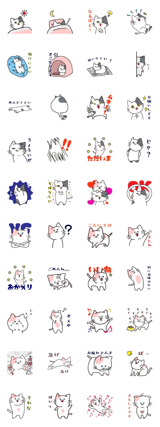 白ネコのあいうえお・・・ってるスタンプ