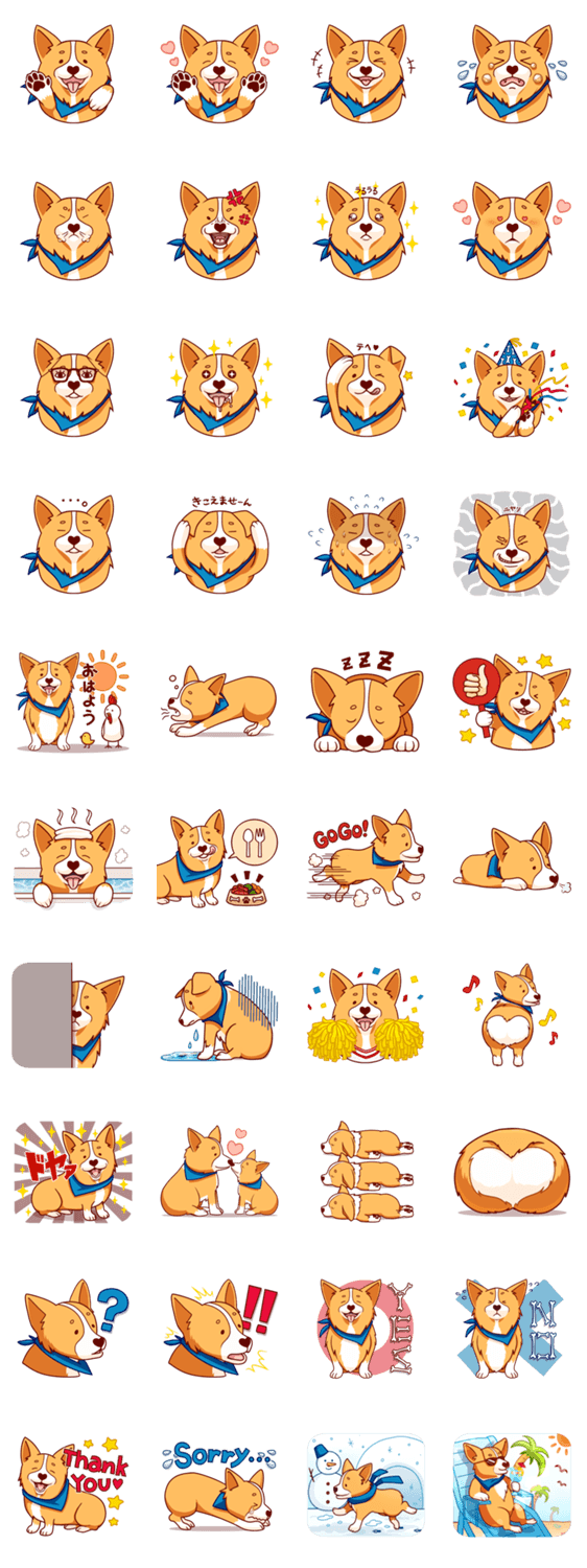 コーギー犬のスタンプです。コーギー好き、犬好きの方はもちろん、動物好きの方もトークのお供に是非!