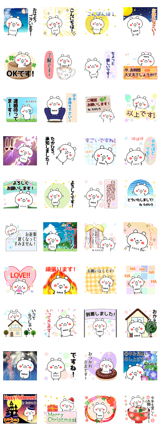 Takahiro たかひろ タカヒロ 貴大 貴洋 貴博 隆弘 孝宏 専用名字/苗字/なまえ敬語スタンプ。誕生日祝,ハロウィン,クリスマス,年賀状(正月)挨拶入