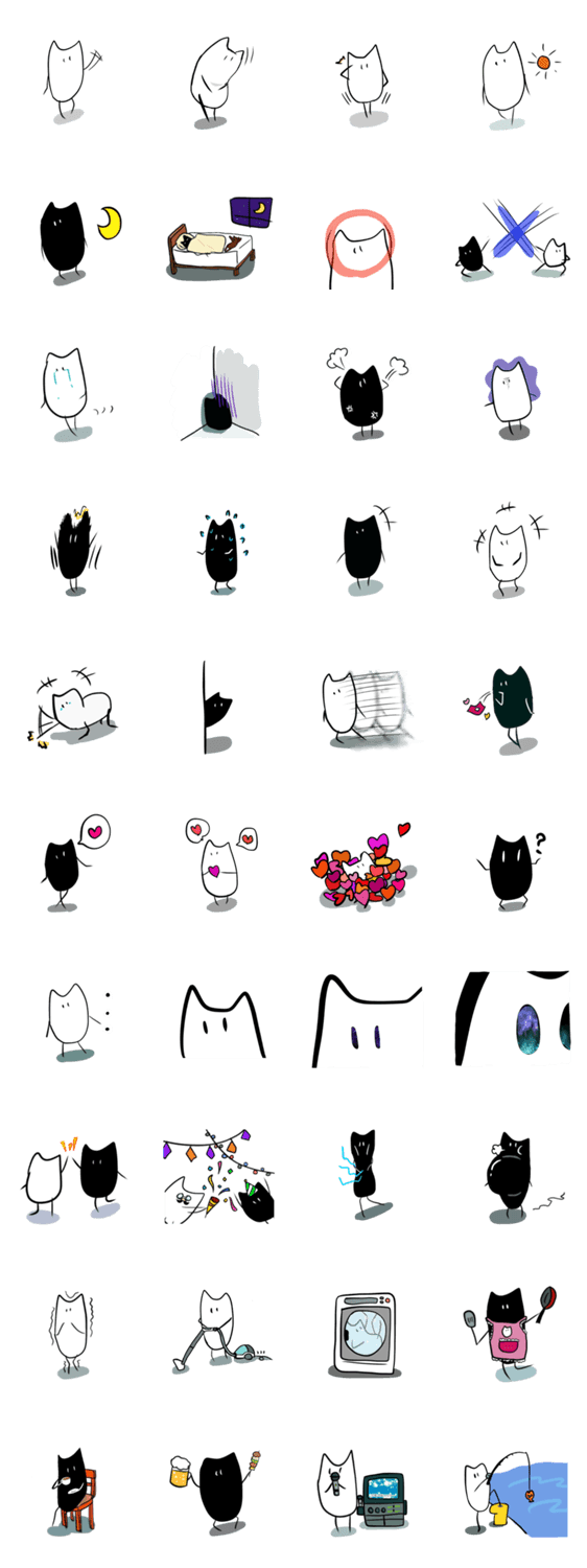 猫のように見えますが、猫ではありません。白色と黒色の生命体です。はたして彼らは何者なのでしょうか。そんな生命体のゆるーいスタンプ。