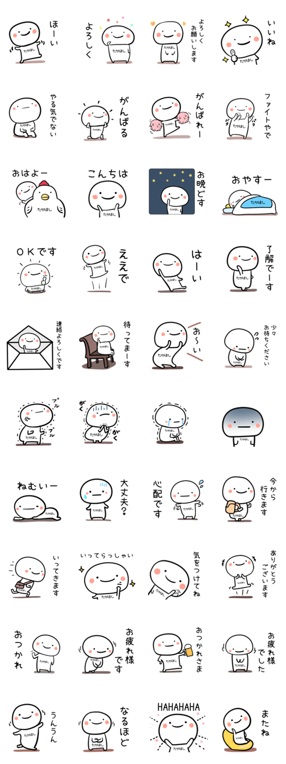 | スタンプ説明 | Takahashi たかはし タカハシ 高橋 高梁 鷹箸 専用。敬語&タメ語。しろくてまるい無難で使いやすいスタンプ |
