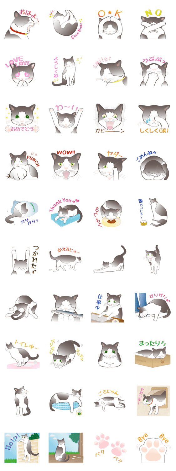| スタンプ説明 | 白黒ハチワレ模様の愛猫machaにゃんがスタンプのモデルです。 |